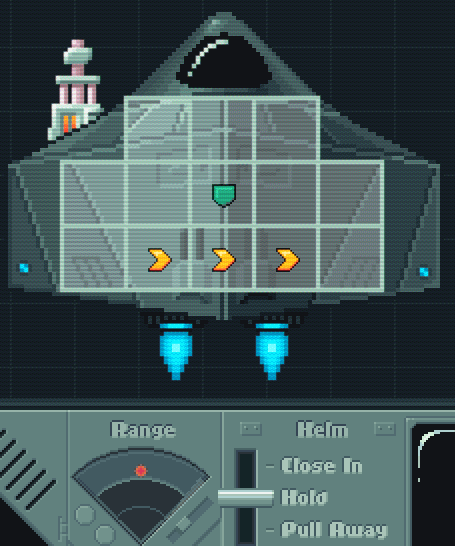That gave me the idea to implement range in Loadstar. By powering up the engines and setting the helm control you can choose to close with the enemy or pull away. Each weapon has an accuracy based upon whether you are currently at long, mid or short range. A missile makes a good stand-off weapon whereas flak cannon work best when you get in close.